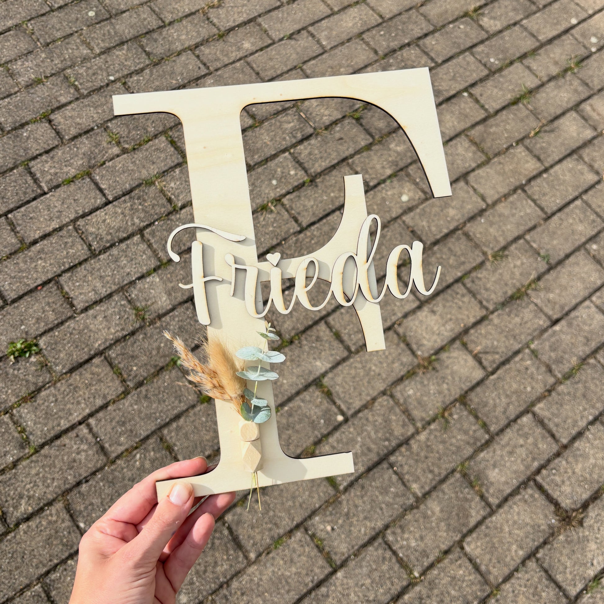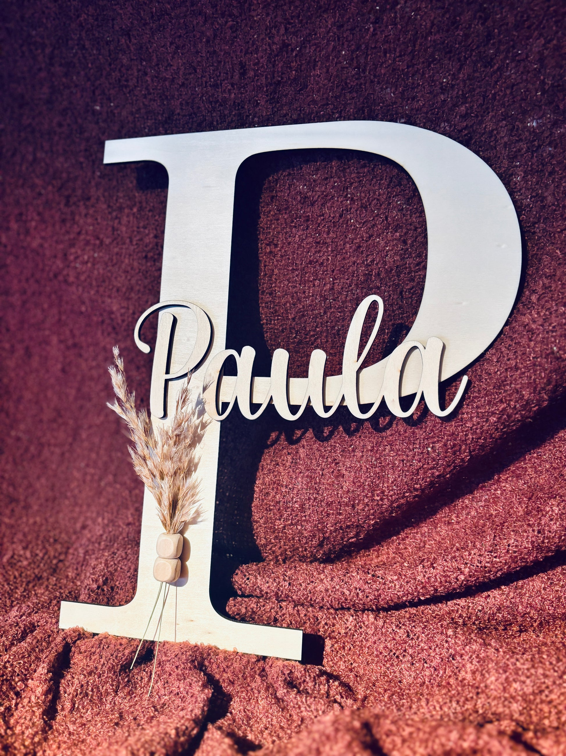 Der große Anfangsbuchstabe wird aus Holz gefertigt und mit deinem Wunschnamen verziert. So entsteht ein individuelles Dekoelement – perfekt fürs Kinderzimmer, als Geschenk oder als liebevolle Überraschung für einen besonderen Menschen.